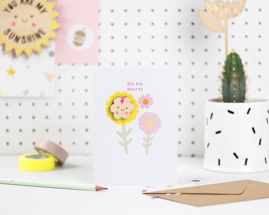 Hip hip hooray floral greeting card