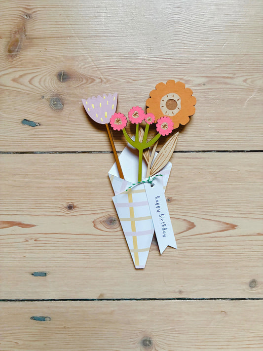 Hand-painted floral wooden spring bouquet